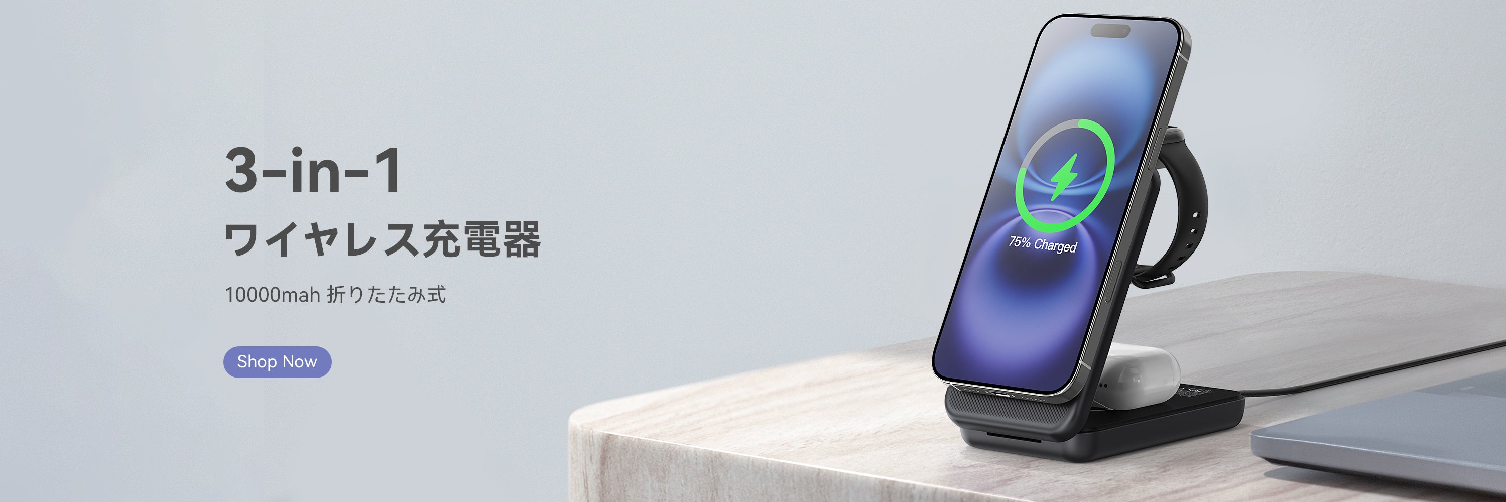 RORRY D2 モバイルバッテリー 10000mAh ケーブル内蔵・Apple Watch対応・3in1・小型軽量・4台同時PD20W急速充電・磁気充電
