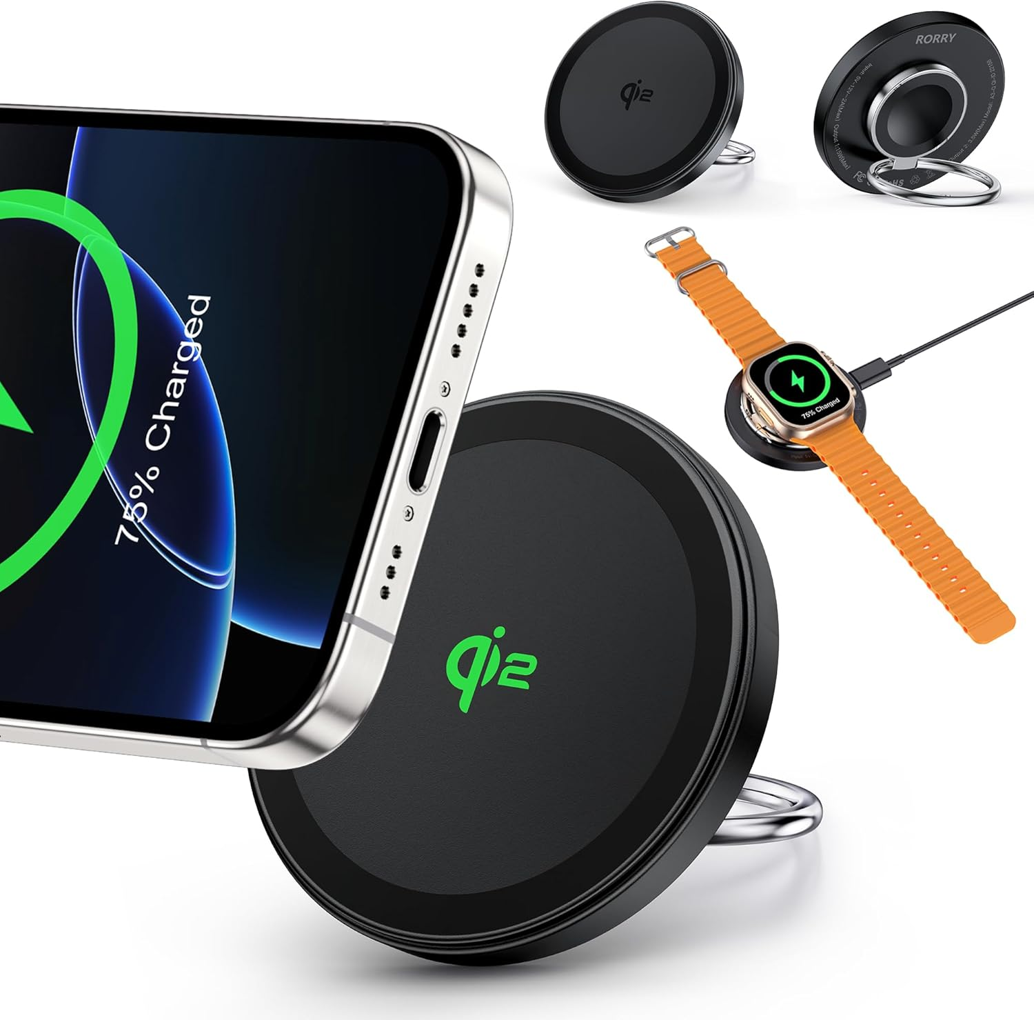 リアル15W Qi2認証済み 360°回転式スタンド折りたたみ式ワイヤレス充電器「W27」