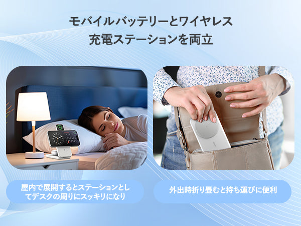 - ⭐【10000mah大容量モバイルバッテリー・1日の外出で安心】長時間の外出時、大容量なモバイルバッテリーがあれば、外出先でも安心してスマホ/Applewatchを使用できます!RORRY社の4IN1magsafeモバイルバッテリーは10,000mAhの大容量があり、iPhone 16を約1.8回、Apple Watch Series 9を約21回、AirPods 4なら約13回のフル充電が可能で、旅行など長い時間充電したい場合や動画・ゲームなど電池の消費が激しい利用をする場合でも充電切れの心配がありません!折りたたみ式のデザインで、使わないときにステーションから手帳のようなモバイルバッテリーを変身し、手に収まりやすい11.5*7*3CM、重量293gとなっていてサイズでバッグなどに収納しやすく、外出時に持ち運びやすいので便利です。また、弊社のモバイルバッテリーはワット時定格量が「160Wh以下」で、飛行機の機内持ち込みが可能なので、旅行の手荷物に入れて携帯しやすいです!PSE認証も済で使用上にご安心ください。 .