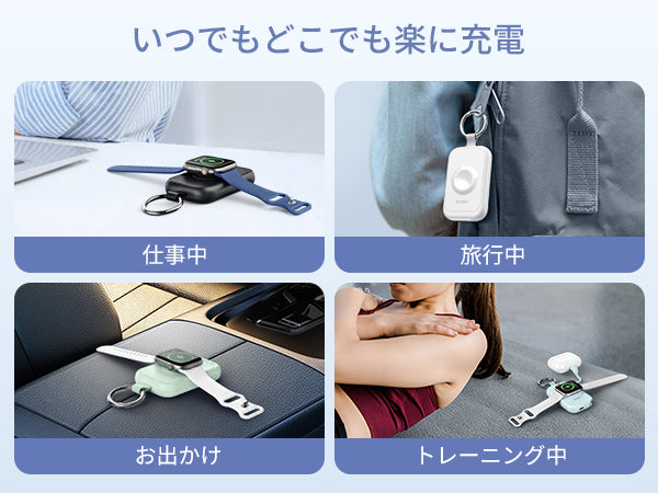 - 🔋【56分でフル充電可能な高速磁気充電器】充電器はApple Watch専用の高速充電モジュールを搭載され、Apple Watch 10-7/SEをわずか56分でフル充電できます。アップルウォッチへの充電スピードがより60%upしました。また、ポータブルバッテリーは最新のosシステムに対応可能で、Watch OSがアップデートされてもご心配なく順調に充電できます。アップルウォッチ 急速充電を求めているお方には大変便利な充電器です。(高速充電に対応するのは、Apple Watch Series 10/9/8/7/Ultra/Ultra2のみです。Ultraシリーズは2時間ほどフル充電できます)