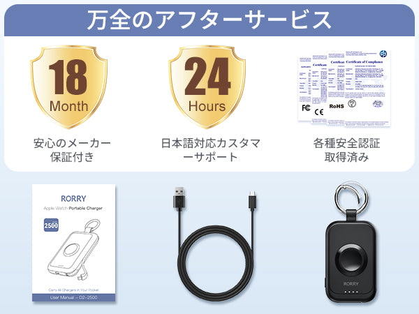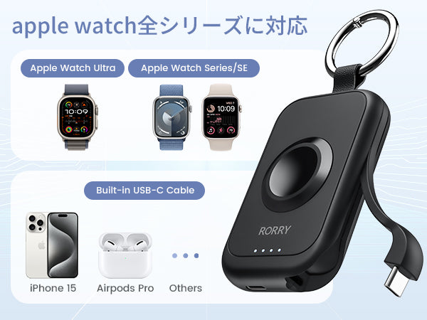 RORRY D2 Apple Watch モバイルバッテリー 2500mAh USB-C内蔵 2in1 充電器 ライト・コンパクト PSE認証