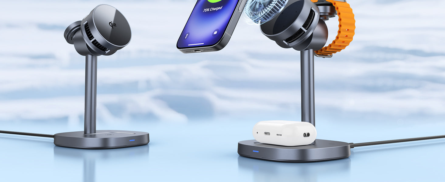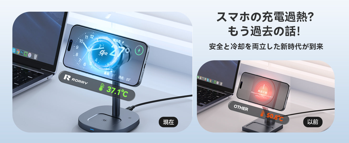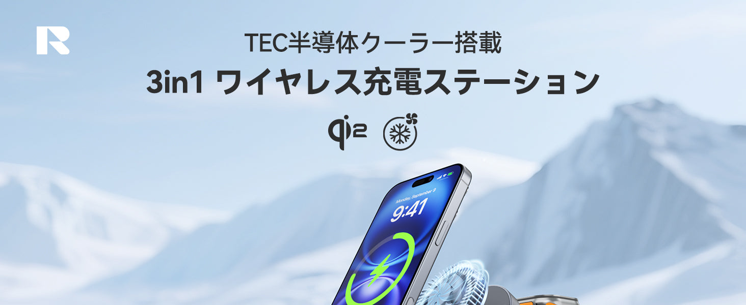 RORRY 3in1冷却ワイヤレス充電器 Qi2認証・静音冷却ファン搭載 iPhone/Apple Watch/AirPods同時充電