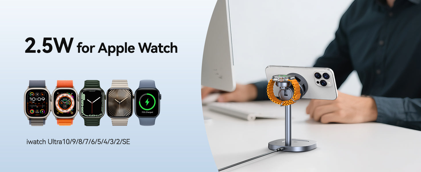 • 【片手で吸着×3台デバイスを全速・安定で同時充電可能!】従来のワイヤレス充電では、スマホを充電パッドの「正しい位置」にセットしないと、充電効率が低下したり、充電が途切れたりすることが少なくありません。Qi2 は「Magnetic Power Profile(磁気結合プロファイル)」を導入し、デバイスと充電器が磁気で自動的に最適な位置にアライメントされます。3in1 デザインにより、iPhone、Apple Watch、AirPods を同時に充電できます。複数のデバイスを一箇所でまとめて充電できるため、デスク周りのケーブルが整理でき、スッキリとした空間を作ることができます。家族で複数デバイスを使用する場合でも、一台の充電器で全ての充電ニーズに応えることができます。充電中も各デバイスの状態を確認しやすい配置になっています。