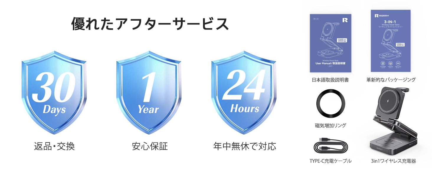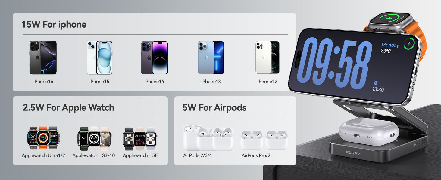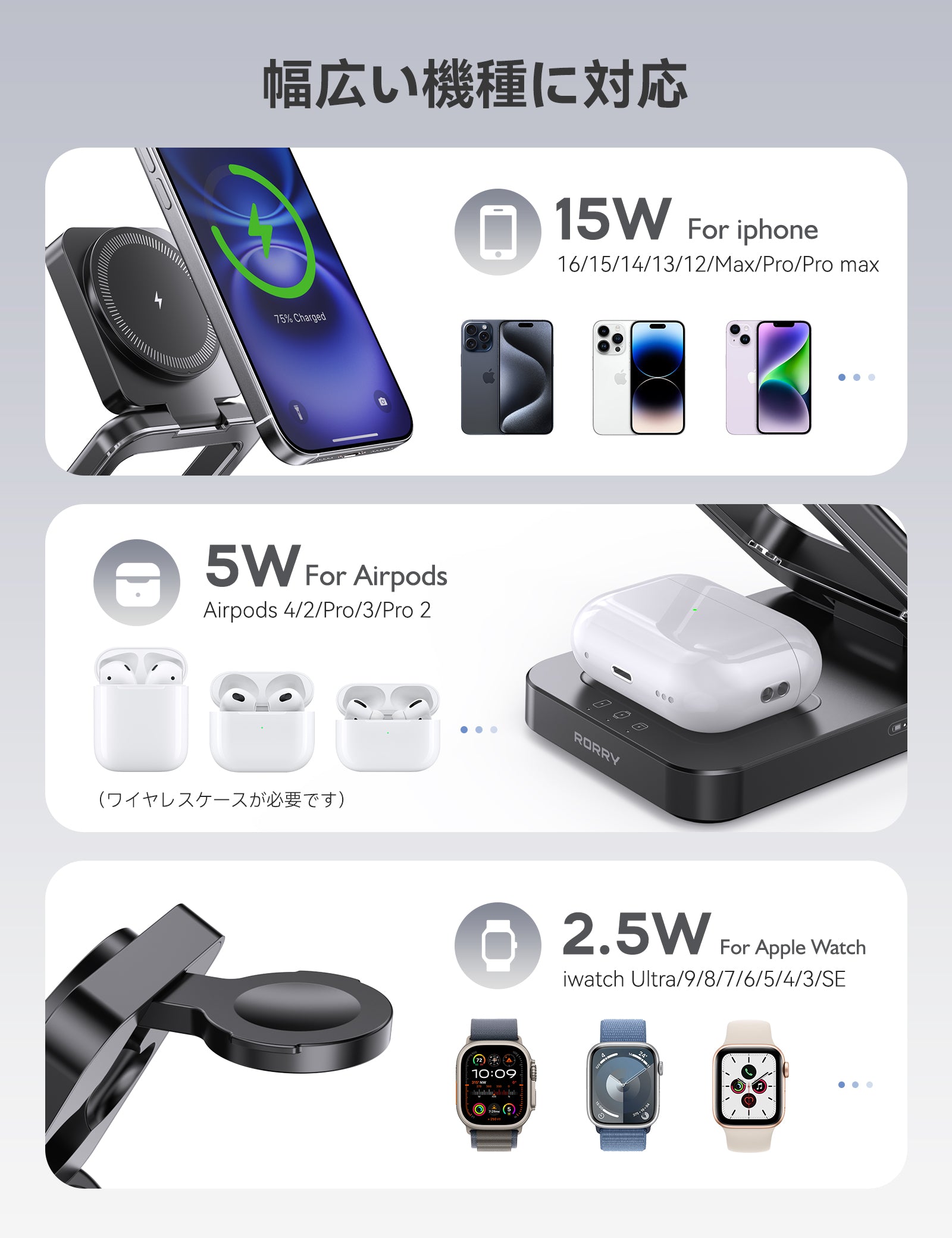 RORRY D17-5000mAh D18-10000mAh 3 in 1 ワイヤレス充電ステーション