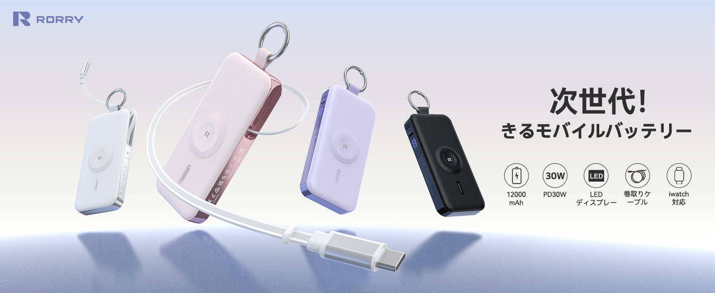 RORRY D3 12000mAh キーチェーン型モバイルバッテリー 30W